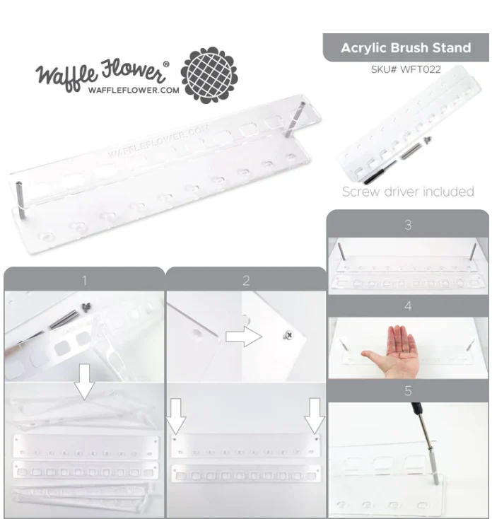 Made from crystal clear acrylic and sized for Waffle Flower Blending Brushes Set.